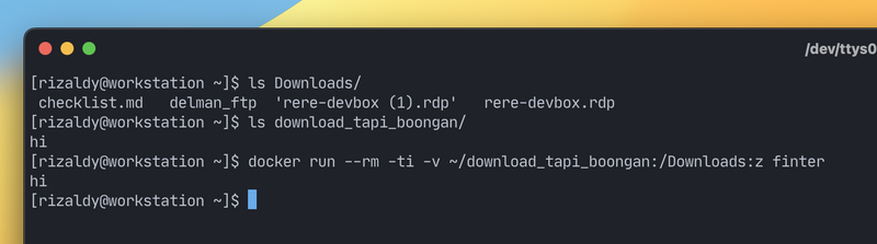 gagal dijalankan (exit code nya bukan 0). Jika di kasus sebelumnya kita melakukan mapping untuk direktori Downloads