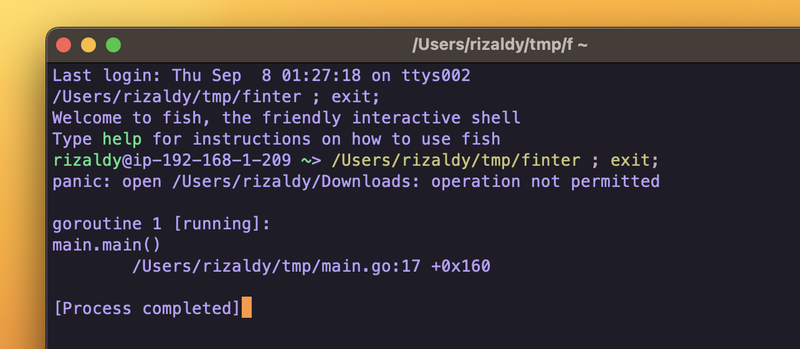 Dan ini intended karena gue tidak memberikan permission untuk mengakses direktori Downloads