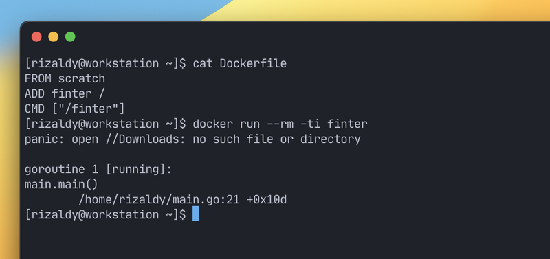 Ini masih basic, mengingat di "container" kita tidak memiliki direktori "Downloads" dan plus kita tidak handle kesalahan tersebut, by purpose.